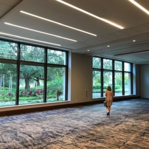 And the aesthetically pleasing ballrooms are something to get excited about. The Peninsula ballrooms are the newest additions to the event space. Floor-to-ceiling windows, walls decorated with a modern feel and linear lighting make for a very beautiful space.